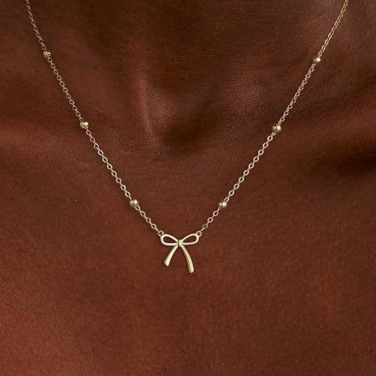 • Dainty Necklaces for Women: Unique bow design, simple, exquisite and fashionable, suitable for any outfit, can be worn alone or stacked with other necklaces