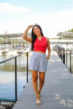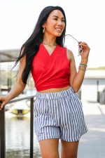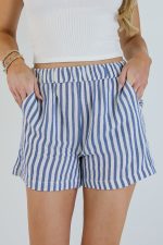 Warm days call for a breezy and casual look like the All American Denim Striped Linen Shorts! These relaxed-fit shorts feature a soft, breathable linen fabric thatās perfect for warm days. The denim-inspired blue and white stripes add a touch of classic charm, while the elastic waistband ensures a comfortable, flattering fit. Easy to dress up or down, these shorts are perfect for everything from beach days to casual weekendsājust pair them with a simple tee or a flowy blouse for an effortlessly stylish look! Lightweight Crinkle Linen Fabrication Striped Print High-Waisted Elastic Waistband Relaxed Fit Side Pockets 100% Cotton Hand Wash Cold, Lay Flat to Dry Models are 5’4″ + 5’10” and are wearing a Small.Garment Measurements in Inches:Small | Waist 28ā (Stretches up to 34″) | Hips 40ā | Length 15ā | Inseam 4āMedium | Waist 30ā (Stretches up to 36″) | Hips 42ā | Length 16ā | Inseam 4āLarge | Waist 32ā (Stretches up to 38″) | Hips 44ā | Length 16.5ā | Inseam 4ā