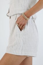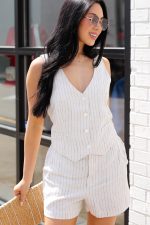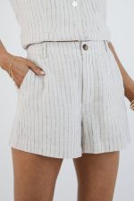 Add some “prep” to your step whenever you head out wearing the All For It Natural Striped Shorts! Designed with a flattering high-rise fit and sleek trouser-inspired details, these shorts feature vertical black stripes on a tan background for a timeless, elongating look. The structured waistband, subtle pleats, and polished silhouette make them perfect for dressing up or down. Style them with a tucked-in blouse and loafers for a refined daytime look or pair with a tank and sandals for effortless cool! Lightweight Linen-Blend Fabrication Striped Print High-Waisted Functional Button + Hidden Zipper Fly Closure Elastic Waistband in the Back Belt Loops Relaxed Fit Side Pockets 70% Viscose, 30% Linen Hand Wash Cold, Line Dry Models are 5’4″ + 5’6″ and are wearing a Small.Garment Measurements in Inches:Small | Waist 26ā | Hips 38ā | Length 14ā | Inseam 3āMedium | Waist 28ā | Hips 40ā | Length 14.5ā | Inseam 3.5āLarge | Waist 30ā | Hips 42ā | Length 15ā | Inseam 3.5ā