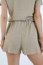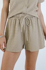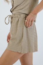 You can count on the Life Of The Party Khaki Textured Shorts to be your go-to! Designed with comfort in mind, these lightweight shorts feature a soft textured fabric and a flattering elastic waistband for an easy, pull-on fit. The neutral taupe hue makes them endlessly versatileāperfect for pairing with anything from breezy blouses to casual tees. Whether you’re headed out or lounging in, these shorts are your go-to for relaxed style with a refined touch! Soft + Stretchy Textured Knit Fabrication High-Waisted Elastic Waistband with Functional Drawstring Tie Relaxed Fit Side Pockets Lined Pockets Self: 95% Polyester, 5% Spandex Lining: 100% Polyester Hand Wash Cold, Line Dry Models are 5’0″ + 5’6″ and are wearing a Small.Garment Measurements in Inches:Small | Waist 26ā (Stretches up to 36″) | Hips 44ā | Length 14ā | Inseam 2āMedium | Waist 28ā (Stretches up to 38″) | Hips 46ā | Length 15ā | Inseam 2.25āLarge | Waist 30ā (Stretches up to 40″) | Hips 48ā | Length 16ā | Inseam 2.5ā