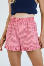 Start the weekend by pairing your favorite baby tee with the Red White And You Gingham Ruffle Shorts! Featuring a timeless gingham print and a flirty ruffle hem, these shorts bring a sweet touch to your summer wardrobe. The elastic waistband offers a comfy, pull-on fit while the lightweight fabric keeps things breezy and effortless. Perfect for picnics, weekend getaways, or casual days out, these shorts pair perfectly with a simple tank or a tucked-in blouse for a polished yet playful look! Available in 2 colors. Lightweight Cotton-Blend Fabrication Gingham Print High-Waisted Elastic Waistband Relaxed Fit Ruffle Hem 50% Polyester, 50% Cotton Hand Wash Cold, Hang or Line Dry Models range from 5’4″ – 5’9.5″ and are wearing a Small.Garment Measurements in Inches:Small | Waist 26ā€ (Stretches up to 32″) | Hips 38ā€ | Length 14ā€ | Inseam 3ā€Medium | Waist 28ā€ (Stretches up to 34″) | Hips 40ā€ | Length 15ā€ | Inseam 3ā€Large | Waist 30ā€ (Stretches up to 36″) | Hips 42ā€ | Length 16ā€ | Inseam 3ā€