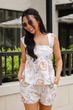 The Vitamin Sea Ivory Shorts are vacay-ready! These breezy beauties feature a soft ivory base adorned with a bold, colorful tropical print that instantly elevates your warm-weather wardrobe. Designed with a comfortable elastic waistband and a relaxed fit, they’re perfect for everything from beach days to weekend brunch. Pair them with a simple tank or the matching top for an effortlessly chic, vacation-ready ensemble! Lightweight Woven Knit Fabrication Tropical Print High-Waisted Elastic Waistband with Functional Drawstring Tie Relaxed Fit Side Pockets Made in the USA 90% Rayon, 10% Nylon Machine Wash Cold, Lay Flat to Dry Model is 5’4″ and wearing a Small.Garment Measurements in Inches:Small | Waist 26ā€ (Stretches up to 30″) | Hips 36ā€ | Length 14ā€ | Inseam 3ā€Medium | Waist 28ā€ (Stretches up to 32″) | Hips 38ā€ | Length 14.5ā€ | Inseam 3ā€Large | Waist 30ā€ (Stretches up to 34″) | Hips 40ā€ | Length 15ā€ | Inseam 3ā€